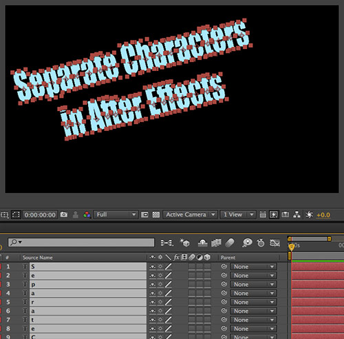 Split an Adobe After Effects text layer into individual characters, with each character on its own text layer. Each character is positioned correctly within the composition and can then be individually keyframed.